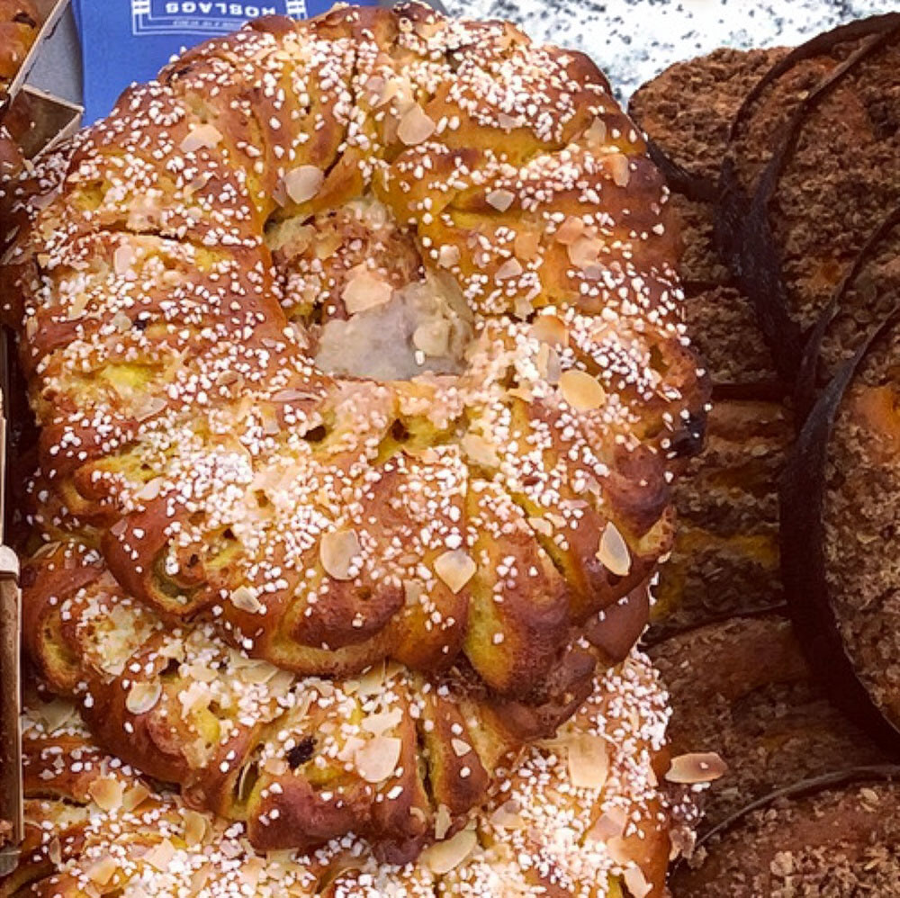 Lyxig saffranskrans bakad på smör, mjölk och innehåller russin och persisk saffran, fyllning smör och mandelremons ca 8-10 personer