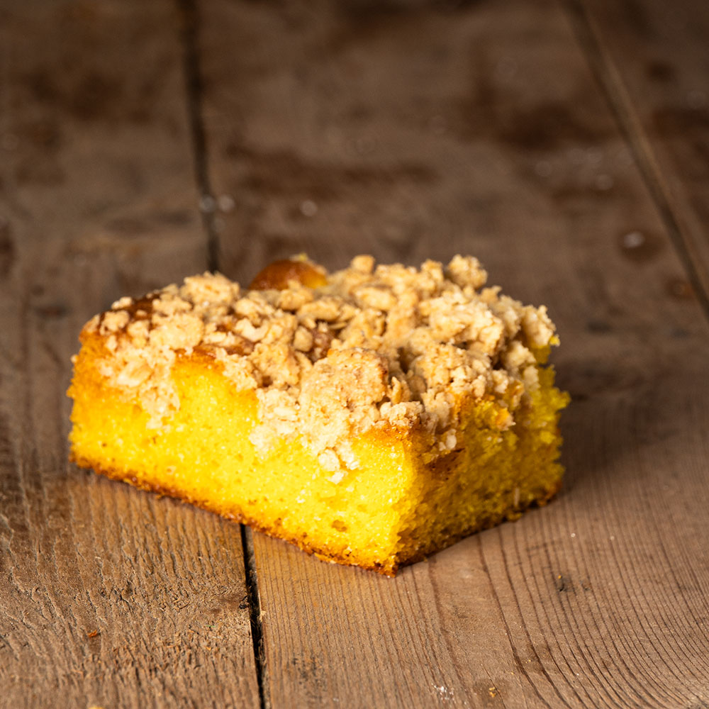 En mjuk och saftig mjuk kaka bakad på persisk saffran fylld med kaneläpplen toppad med havresmul med kardemumma