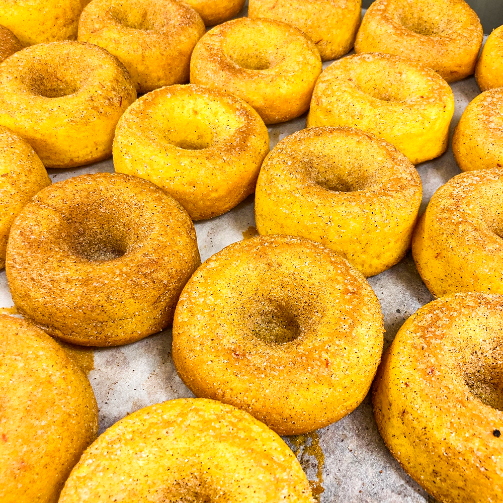En mjuk och saftig ”sockerkaksring” med persisk saffran doppad i kanelsocker